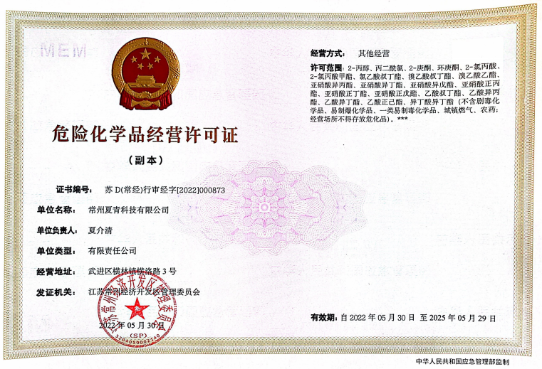 電 話:0519-88783621 郵 箱:xjq@xialichem.com